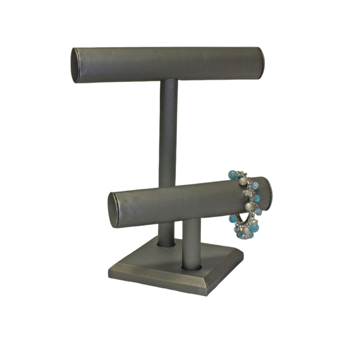 Steel Grey Jewelry Double T Bar is 10"H. Two tiers for multidimensional jewelry displays!